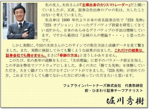 あの有名な「ミスター・デリバティブ」こと堀川秀樹氏より推薦状をいただきました。